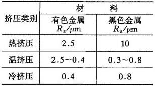 8.1.1.4 挤压件的精度和表面粗糙度 挤压件所能达到的表面粗糙度如表8-6所示. 冷挤压时尺寸公差见表8-7. 表8-6 挤压件所能达到的表面粗糙度要求