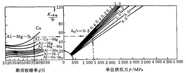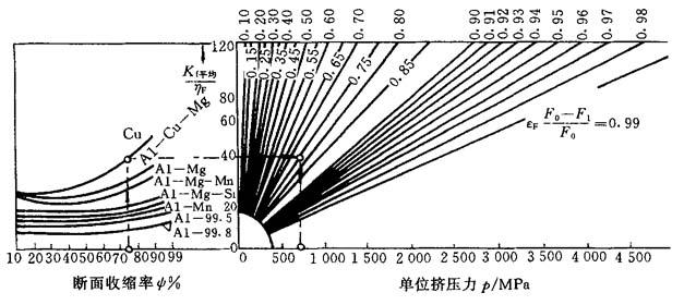 图8-5 有色金属正挤压单位挤压力计算线图
