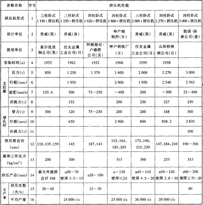 (b)不锈钢管 图3-10 挤压管生产工艺流程 表3-15 国外一些挤压机的性能