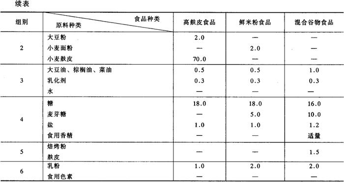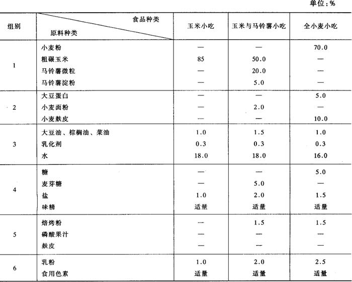 表2-7-2 挤压膨化早餐食品配方(按质量分数计)