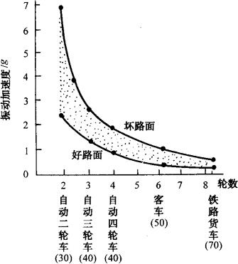 | 释义 | 振动及其生理反应 (一)振动强度及不同运输工具的差异 振动是果蔬运输时应考虑的基本环境条件。振动强度的大小可用普通振动所产生的加速度来表示,即g表示(g=9.8m/s2)。但由于振幅与振动周期不同,即使振动强度相同,对果蔬产生的影响也不相同。振动加速度超过1g就可能直接造成果蔬的机械伤害,但也不能忽视1g以下的微小振动。 1.铁路运输 虽然铁路货车在型号及车辆编组等许多因素上有差别,但货车的振动通常几乎都低于1g。尽管有时货车与货车间有共振,致使运输中某个时期也会发生稍大的振动,但一般货车的振动比卡车小得多。 2.卡车运输 卡车的振动受到车轮数、车型、道路情况、橡皮轮胎的充气程度、货物装量、货物在车厢中的位置和车行驶速度等的影响。机动车辆车轮数少、车型小、橡皮轮胎充气的压力高,货物装量少要比机动车辆车轮数多、车型大、橡皮轮胎充气的压力适中和货物装量满的振动要大(见图4-1)。就货物在车厢中的位置来讲,以后部上端的振动最高,前部下端最小。车厢后部上端的振动有时最高可达5g,这样会造成箱子跳动,使箱与箱间发生二次碰撞,造成更大的振动和碰撞,从而造成果蔬的伤害。车的行驶速度大,则车的振动会增大,振动次数也会增多。在铺设得很好的路面上及高速公路上,行车速度与振动关系不大,一般振级不超过1g。而在铺路不好的路上和未铺的路面上行车时,车速越快,振动越大,经常会发生3g左右的振动。可见,道路完备状况对卡车运输新鲜果蔬有着重要的意义。