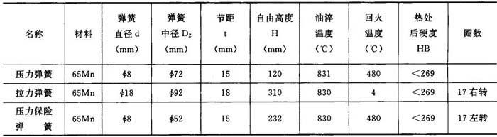 表6-5-9 弹簧减振结构技术特征