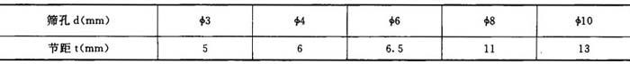 (4)工艺条件的选择 ①筛孔和节距的选用见表6-5-10 表6-5-10 筛孔和节距的选用