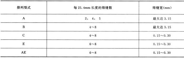 图6-5-6 筛缝排列型式 表6-5-14 筛缝与筛距