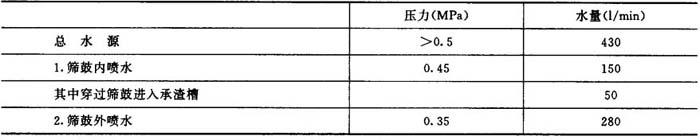 图6-5-9 高频振动圆筛生产能力与筛缝宽度、浆料浓度的关系曲线 图6-5-9曲线是L3型高频振动圆筛筛选漂白浆时的结果,L2~L0型高频圆筛或筛选草类粗浆时,应乘以适当的系数。 ②进浆浆位与良浆出口浆位之间位差的影响,浆位低了,不但产量低,而且质量也不好。因为浆位低,良浆和尾浆排出慢,尾浆在浆槽内停留时间长,从而增加浆渣通过筛缝的机会,若浆位过高则将增加喷水排渣流失,造成浪费,在操作上进浆浆位-般控制到筛鼓直径的4/5为佳。 ③喷水管压力应保持在0.5MPa以上,并且要求水质清洁,否则容易堵塞。表6-5-19列出了Φ1000×750高频振动圆筛的用水要求。 表6-5-19 Φ1000×750高频振动圆筛用水要求
