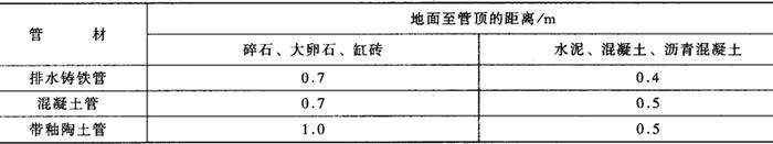 排出管:接至检查井。检查井距建筑物外墙一般3~10m。采用埋设方式。埋设深度见表5-3-5。 表5-3-5 排水管道的最小埋设深度
