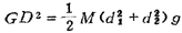 图3-73 用环氧树脂衬层 (1)环氧树脂 ①耐药品性能:耐碱、酸,不耐氧化性的酸、漂白剂。 ②耐热性能:经常接触液体的部分为70℃,接触气体的部分在100℃以下。 ③机械强度:能与软钢、轻合金很好地粘合。如果在衬层时,用玻璃纤维辅助加强一下,其抗冲击性会更好。在既要求化学强度又要求机械强度的部分,使用环氧树脂衬层,能够保持材料的原有强度,又可明显改善其化学性质。 (2)用衬层的排风机 ①结构;需事先做好设计,叶轮要有很好的动态平衡能力。衬层已装到机器上以后,发生不平衡时,可用环氧树脂加厚进行调整。 ②气孔检查:将高压电加在原素材上,根据电晕放电原理检查气孔。 ③组装:将叶轮安装在轴承上,然后用环氧树脂完全覆盖紧固螺栓。 3.6.11 飞轮效果(GD2) 起动排风机时,电机要将很重的叶片从静止状态慢慢地带动起来,达到正常转速后,进入稳定运转。一般情况下,电机输出要根据稳定运转时所需动力而定。实际上,叶片以静止状态至稳定运转的过渡期,必需给叶片以运动能。 排风机叶片惯性很大,特别是大型机器,因此,不能忽视这个能量。这种惯性能量被称为“飞轮效果”,用GD2表示。如果GD2大,由于运动能量积蓄或放出,在电机起动、停止时会慢一些,所以,需要合适的起动转矩。如果是55kW以上的大型排风机,要根据电机轴换算的GD2决定电机的叶轮数目。如果是小型排风机,可使用一般电机,但起动时间长于其它机器,因此应注意起动方法。 GD2是根据旋转体的形状和质量计算出的固定值,与物理学的惯性力矩有同样的意义。 GD2=4gI 式中 g——重力加速度(m/s2); I——惯性力矩(kgm2)。 3.6.12 GD2的计算方法 (1)圆板(图3-74)——直径d、质量M、重力加速度g,