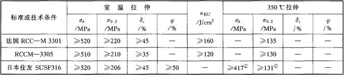 (3)室温和350℃的力学性能 控氮00Cr17Ni12Mo2奥氏体在不同国家的标准中规定的室温和300℃、350℃的力学性能指标有所差别(见表1-167)。工业产品的实际测定结果见表1-168、表1-169和表1-170。 表1-167 不同标准所规定的控氮00Cr17Ni12Mo2的力学性能指标