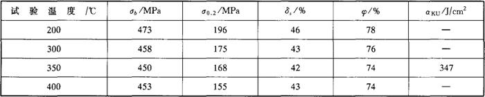 表1-169 控氮00Cr17Ni12Mo2钢管的高温力学性能(试样取自Φ310×24mm钢管)