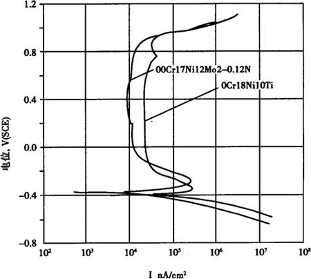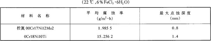 图1-208 控氮00Cr17Ni12Mo2和316L不锈钢的TTS曲线 c.点腐蚀 控氮00Cr17Ni12Mo2,由于氮的加入,其耐点蚀性能明显优于0Cr18Ni10Ti,见表1-171。 表1-171 控氮00Cr17Ni12Mo2和0Cr18Ni10Ti耐点蚀性能