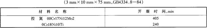 图1-209 控氮00Cr17Ni12Mo2的点蚀电位 (3.5%NaC1,GB4334-84) d.应力腐蚀 控氮00Cr17Ni12Mo2钢在42%沸腾MgCl2和高温高压水中的应力腐蚀行为分别见表1-172、表1-173。 表1-172 控氮00Cr17Ni12Mo2钢在42%沸腾MgCl2中的应力腐蚀