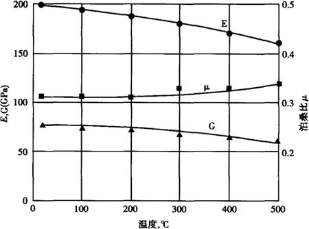 图1-211 控氮00Cr17Ni12Mo2的弹性模量、切变模量及泊桑比