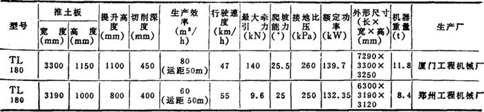 (五)轮胎式推土机 TL180型轮胎式推土机主要用于抡修构筑道路、配挂载重20t的平板车、拖运履带车辆或其他装备物资等。其技术性能见表2-8-64。 表2-8-64 轮胎式推土机技术性能