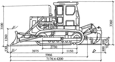| 释义 | 推土机 推土机是土方工程施工的主要机械之一,是在拖拉机机头装上推土铲刀等工作装置而制成的机械。按铲刀的操纵机构不同,推土机可分为索式和液压式两种,目前多采用液压式;按其行走装置不同,推土机可分为履带式和轮胎式两种,工程上常用的是履带式。图1-10所示为液压式推土机外形。