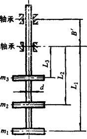 图3-5-20 搅拌轴临界转速计算简图 (各符号意义同图3-5-19)