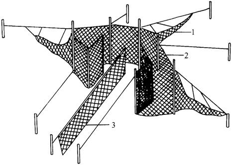 1.倒须笼 2.围网 3.墙网