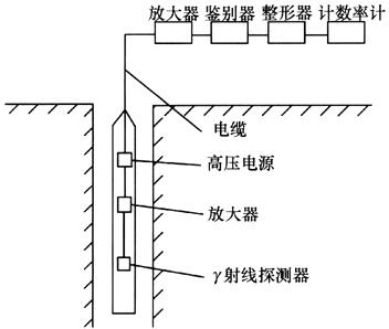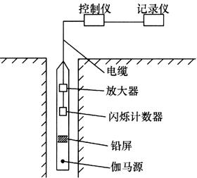 图14-5 自然伽马测井测量原理 14.3.2.2 伽马-伽马测井 伽马-伽马测井又称为密度测井,其测量原理见图14-6。