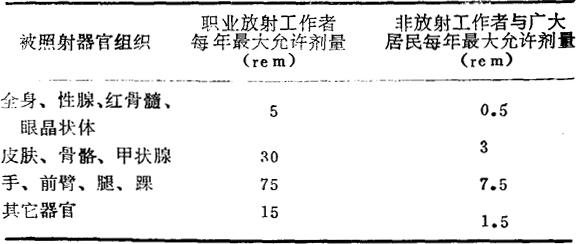 | 释义 | 放射防护 1.7.1 放射防护规定与措施 外照射放射防护的目的是为了保障直接或间接接触放射性的工作人员、其他工作人员与广大居民的健康与安全,减少与控制接受放射治疗患者不必要的照射。我国《放射防护规定GBJ8-74》对放疗工作者接受的职业照射最大允许剂量与总累积量,及放疗工作场所附近工作人员与广大居民的限制剂量当量(表1-15)作了详细规定。 表1-15 最大允许剂量水平