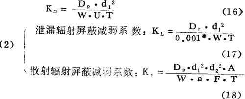 式中∶Km为对原射线屏蔽减弱系数;Kl,Ks分别为泄漏与散射屏蔽减弱系数;W为工作负荷(R/周·米);U为使用因素即直接被照射部位使用比值(1/4);T为居住因素;Dp为最大允许周剂量(100mR/周);d1为放射源至计算点的距离(m);d2为源皮距离(m);a为某角度时的散射率(90°时为0.1%);F为散射体处射野面积(cm2);A为测量散射率时标准面积(400cm2);*处于照射位源距一米处机头泄漏限量为0.1%。 泄漏与散射线的能量可按原射线能量考虑,它们的屏蔽厚度应分别计算。如果两者屏蔽厚度相差不足3个半值厚,可按其中厚屏蔽层再增加一个半值厚计,相差超过3个半值厚只按厚屏蔽层考虑即可。 |