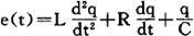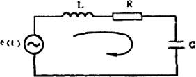 在图4.5.7-2的电路系统中,L为电感线圈的电感量,R为电阻的电阻值,C为电容器的电容量,e(t)为随时间变化的电势。依基尔霍夫第二定律,则可写出描述电路系统的电势方程为