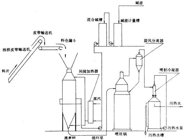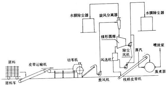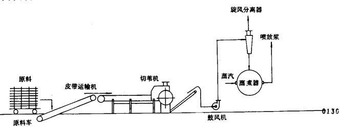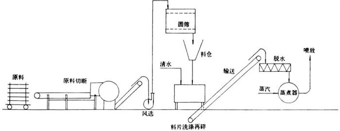 图5-4-4 干湿法结合的备料流程 2.蒸煮生产流程 (1)简易蒸煮流程
