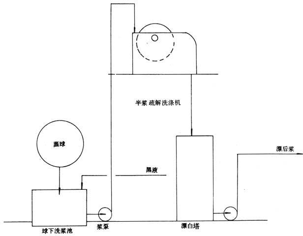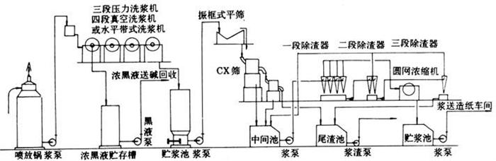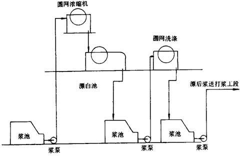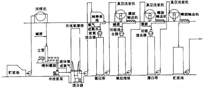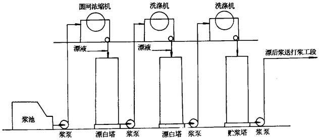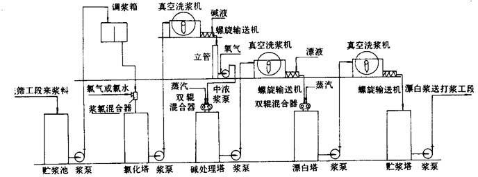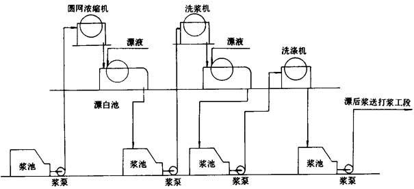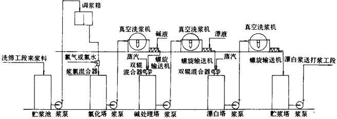 图5-4-11 常规连续洗筛流程 4.漂白生产流程 (1)单段间歇漂白流程