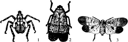 图53 葡萄斑衣蜡蝉 1.若虫 2.成虫静止状 3.成虫(李知行,2000年) 初孵若虫白色,不久即变黑色,上有多个小白斑,足长,头尖,4龄后呈红色上有多个黑点。 卵为圆柱形,长3毫米,宽2毫米。卵粒平行排列整齐,每块有卵40~50粒。卵块上覆灰色土块状的蜡质分泌物。 (3)发生规律 一年发生一代。以卵块在树体向阳面的南部或枝蔓分杈处越冬。在山东次年5月中、下旬孵化为若虫,6月中、下旬至7月羽化为成虫,8月中、下旬后成虫交配产卵。以卵块越冬。若虫、成虫均喜群集生活,弹跳能力特强,受惊即走。 (4)防治方法 建园时,应远离臭椿、苦楝等树种。发现卵块将其压烂。 在若虫或成虫期可喷药剂防治。药剂可选用50%敌敌畏乳油1000倍液、40%乐果1000倍液、90%敌百虫1500倍液、吡虫啉3000倍液。 |