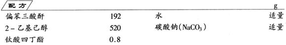 配方中,钛酸四丁酯催化剂的制备:TiCl4和正丁醇反应,并向反应液中通入NH3,使反应生成的HCl不断转化为NH4Cl。反应完后,过滤除去NH4Cl,滤液减压脱去醇,精制蒸馏得产物催化剂。