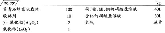制法 以堇青石蜂窝载体为第一载体,用胶粘剂涂上含有CeO2的γ-Al2O3涂层,经干燥、煅烧后制得含CeO2的γ-Al2O3涂层的载体。将煅烧好的涂层载体首先浸入一定浓度的La、Co、Mn、Cu的硝酸盐混合液,一定时间后取出,干燥,煅烧后再浸入含Pd的硝酸盐溶液中,再取出,干燥,煅烧,得到成品催化剂。 本催化剂以La、Ce稀土元素和Co、Cu、Mn过渡元素为主体,添加少量的贵金属,制得了高活性、高热稳定性和低的催化转化温度的汽车尾气净化催化剂,比传统的贵金属催化剂价廉,比纯稀土催化剂活性高。 |
