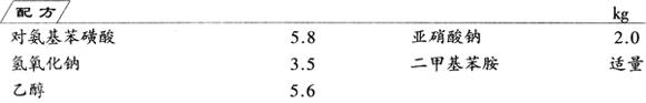 在3kg的水反应罐中,加入一定量的对氨基苯磺酸,并在加热中搅拌使之溶解,然后迅速降至60℃以下,再加入二甲基苯胺搅拌成互溶液体,当降至所要求的温度时,迅速将现配制的亚硝酸钠溶液加入到反应罐中,此时有酸性甲基橙析出,体系呈浓稠状,用氢氧化钠溶液将溶液调至石蕊试纸呈蓝色为止,继续搅拌15min后加热至全溶,冷却放置,使产品析出完全,抽滤,将产品移入乙醇中浸泡、搅拌10~20min,抽干后在40~45℃干燥4~5h得黄色片状甲基橙约7kg,收率为65%。