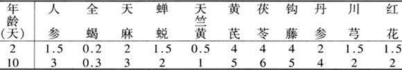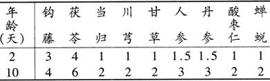 【歌诀】 钩藤当归与川芎,甘草木香加茯苓。 原方本来治夜啼,移此可治儿脑病。 〔按语〕本方由原方减木香,加二参、酸、蝉组成。原方中尚有茯神,由于不少地区已将茯苓菌核内部淡红色之赤茯苓、白色之白茯苓、抱附松根生者之茯神通称为茯苓,故未将茯神再列入方中。方中钩藤平肝熄风,定惊安神。实验表明,该药有明显的镇静作用而无明显的催眠作用,同时又能兴奋呼吸中枢。据报道,钩藤煮沸超过20分钟后,其生物碱会受到破坏而影响药效,故应后下。方中茯苓益心脾,宁心安神,利水渗湿,补而不峻,利而不猛,既能扶正,又可祛邪。当归补血活血,甘温而润。川芎活血行气,与当归配用,能通达气血。川芎浸膏有明显镇静作用。甘草调和诸药。人参益心气,安心神,补肺益脾。大补元气,扶正祛邪。实验表明,人参具有强心、镇静、提高能量代谢的作用。能抗脂质过氧化反应、抗黄嘌呤氧化酶系统导致的组织肿胀作用而改善脑水肿。它能刺激造血器官,使造血功能旺盛。丹参活血凉血,养血安神,活血祛瘀。该药能调节微循环,清除氧自由基,阻止钙离子内流,减轻脑水肿,改善脑的血流灌注和脑血流自动调节机制,改善脑缺血区血液供给,从而消除缺氧缺血而引起的神经细胞能量代谢障碍。经临床观察,本药能减少缺氧缺血性脑病的后遗症发生率。酸枣仁养心安神。蝉蜕既能熄内风,又能祛外风,故而定惊,实验证明它有镇静、抗惊厥作用。综观全方,人参益气,当归补血,川芎活血;钩藤定惊安神,茯苓宁心安神,人参益心安神,丹参养血安神,酸枣仁养心安神;川芎、蝉蜕均具镇静作用,故对血气不足、心神不宁的患儿具有良效。 (二)气虚血瘀,瘀血惊癎 见于本病中度较重的患儿,可称中度胎惊。本型亦应有气血不足(缺氧缺血)或气血亏耗的病史可查。 〔证候〕昏昏嗜睡,静卧不醒,哭声弱,吃乳少,肢体较松软,时而手足抽掣,翻眼握拳,呼吸不匀,面青缩腮,前囟见肿。舌质暗红。指纹青紫滞,达风关以上。 〔治法〕益气活血,化瘀定惊。 〔方药〕参蝎散(汤)加减。