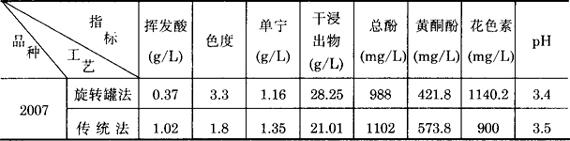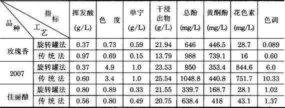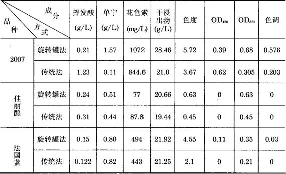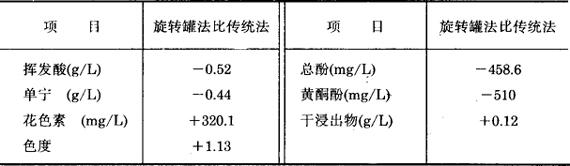 注:原料佳丽酿品种葡萄。 表3-3-36 两种旋转罐工艺生产排罐时各项指标比较