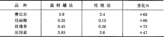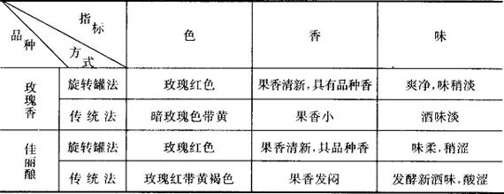 注:表列数据系1983年北京酿酒总厂、北京葡萄酒厂试验组分析。 表3-3-26 旋转罐法与传统法发酵结束时质量对比