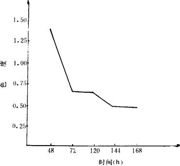由以上三表可知两种方法生产的红葡萄酒经过贮存后质量上有明显差别,主要表现在: (1)色度变化 色度是衡量红葡萄酒的主要外观指标,红葡萄酒要求清澈透明,呈鲜艳的宝石红色。花色素苷对新酿出的葡萄酒的颜色起主要作用,这种作用反应在520nm波长时吸光值增加,色度升高。两种工艺主发酵结束后色度对比见表3-3-31。 表3-3-31 主发酵结束后色度对比