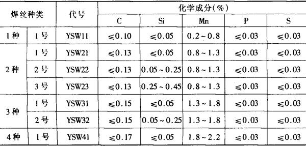 表4-16 日本部分焊丝的种类、代号及成分(%)