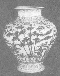 图52 洪武釉里红三友图梅瓶