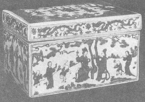 图86 隆庆青花仕女婴戏纹方盒