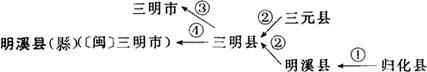 位于东经116°07′~117°35′、北纬26°08′~26°39′之间。 1933年5月,县名因与绥远省归化城同名,改称明溪县。《福建通志》载:“因岸有大小埠相对如“明”字,故称“明溪”。 ①1912年称归化县;1933年5月改称明溪县。②1956年三元县、明溪县合并,称三明县。③1960年5月析原三元县辖区置三明市。④1964年4月三明县复名明溪县。 参见8页“三明市”、190页“宁化县”。 盱凤嘉县 见85页“凤阳县”。 |