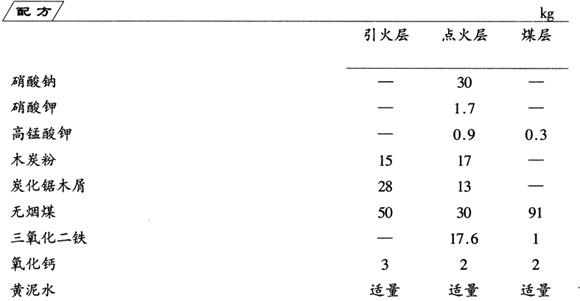 制法 先将大块料粉碎,按配比分别将引火层、点火层和煤层中的全部物料混合均匀,按点火层20%、引火层20%、煤层60%的比例将三层装入模中,把引火层夹在中层,压制成型,晒干,即成蜂窝煤。 使用时,放入炉中与普通蜂窝煤一样使用,只是点火层应向下,一根火柴即可引燃。引燃后上部可叠放普通蜂窝煤。 |