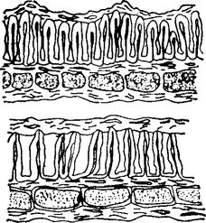 这两种油菜种子形态彼此相似,不可能从种子形态加以鉴别,但可从种皮解剖加以区别。从图7-4可以看到,春油菜种皮的表皮细胞及上层薄壁组织的细胞所形成的种皮压缩层表皮,呈比较明显的波浪状。这是由于栅状层细胞高度不同所引起的。这层相邻细胞密接的侧壁同形成半圆形的向上逐渐变粗的小柱。