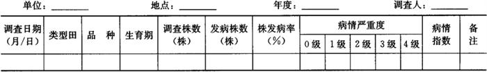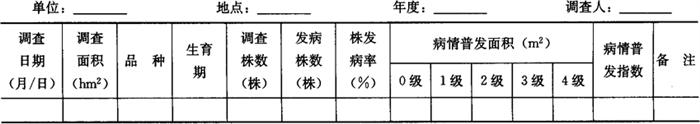 1.2 大田病情系统调查 1.2.1 调查时间 春番茄自定植10天后开始,至番茄采收前10天结束。 1.2.2 调查方法 选早、中、晚茬口、主栽品种及利于发病的地势低、种植密度高的类型田各2~3块。采用对角线5点取样法,每5天1次。每点定株20株,共取样100株,调查株发病率与病情指数。将每次调查的株发病率、病情指数等消长结果汇总填入表6-24。 表6-24 番茄叶霉病大田系统调查记载表