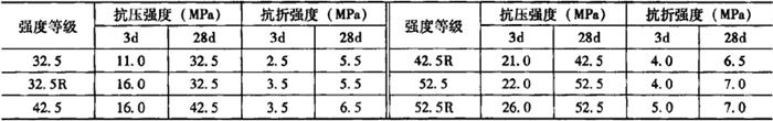 表4-4 普通硅酸盐水泥各龄期的强度要求(GB175-1999)