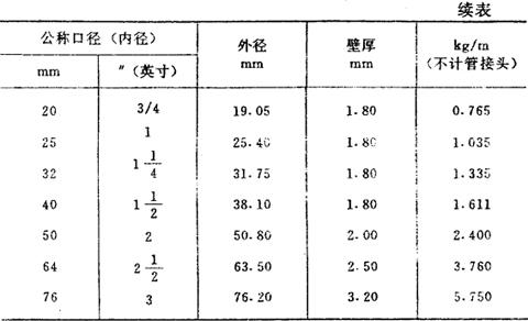 普通碳素钢电线套管理理论重量