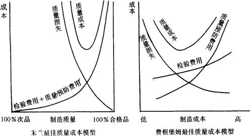 | 释义 | 最佳质量水平分析法 探求最适宜的产品质量水平和最经济的投入费用结合点,即最佳质量成本,为最佳质量水平分析法。质量成本4个二级科目,预防成本、鉴定成本、内部损失成本、外部损失成本之间存在着明显的关系。从(图13-15)美国质量管理专家米兰及费根堡姆的最佳质量水平分析图可以看到,只要增加预防费用和检验费用,损失成本逐渐下降,合格品率不断提高。质量总成本曲线的最低点就是质量成本的最佳值。