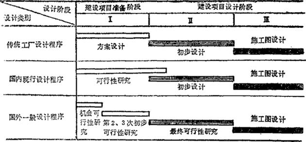 | 释义 | 有关设计院现行设计程序及内容 (一)可行性研究与初步设计的关系 表1-1 展示出国内外可行性研究与我国传统工厂设计程序及深度的对应关系。 表1-1 可行性研究与工厂传统设计深度的对应关系