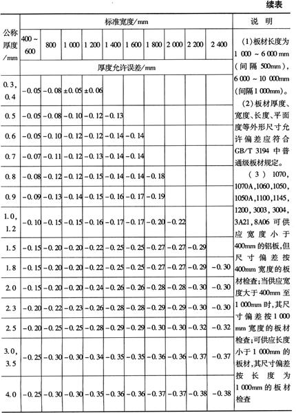 | 释义 | 有色金属板材及带材 (一)铝及铝合金 1.铝及铝合金轧制板材 铝及铝合金轧制板材尺寸及厚度允许误差如表2-65所示。 表2-65 铝及铝合金轧制板材尺寸及厚度允许误差(摘自GB/T3880-1997)