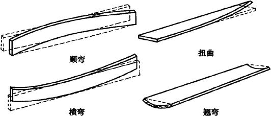 图9-7 木材不均匀干缩板材发生的几种翘曲和扭弯 (四)木材的热传导性 木材与金属相比,其导热性是很小的。因为木材内有很多空隙,空隙中含有不流动的空气,所以木材是热的不良导体。影响木材导热性的因素很多,主要有以下三个方面: 1.与木材的表观密度成正比,其表观密度越大,热传导性越好; 2.与木材的构造方向有关,弦向和径向基本相同,但纵向较横向大约高1倍; 3.与木材的含水率密切相关,随木材含水率的提高而增大。 |
