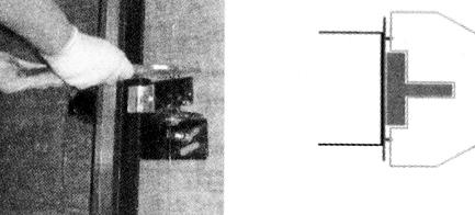 | 释义 | 机房和底坑设备的安装 在样板线放置完毕后,就可以正式开始施工了。此时还可以同时进行机房和底坑设备的安装。 由于移动平台(轿厢)需要机房设备的控制,所以机房设备必须首先正确安装。 机房设备包括:曳引机、导向轮、控制柜、限速器、机房电气布线等。具体安装标准与传统的脚手架安装工艺相同,请读者参考本书其他章节,不再赘述。 在机房安装的同时,还可以进行底坑设备的安装。 底坑设备主要包括:底马槽(导轨底座)、缓冲器、最下一步导轨、限速器涨紧装置等。与有脚手架安装不同的就是导轨的安装和校正,所以这里主要介绍导轨的安装和校正,而其他设备的安装请参阅本书其他章节。 由于没有脚手架,所以最底一层的导轨需要使用梯子或者工作平台进行安装。安装时务必注意人员的安全,站立在梯子上时需要使用安全带。 由于无脚手架安装,底层导轨以上部分的导轨需要在轿厢组装后进行安装,为了防止样板线被轿厢阻碍,在放置样板线的时候,需要将样板线放置在导轨背脸的位置,所以校正导轨也需要采用与有脚手架安装不同的校轨尺和方法。 比较有代表性的导轨校正尺和校正方法如图12.4-1所示,读者可以根据自己安装电梯的标准进行设计校轨尺。为了保证校轨的精度,校轨尺所参考的两根样板线之间的距离不应该小于180mm。