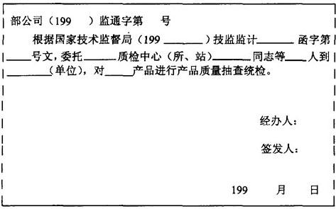 联系人: 电话: 注:1.此表中有关内容填写不下时,可另附页说明。2.“检查依据标准编号”以上栏目应在送计划申报表的同时附统一结构的计算机数据库盘片。3.“检查形式”栏填写“统检”或“抽查”。 附表二 产品质量监督检查通知书存根