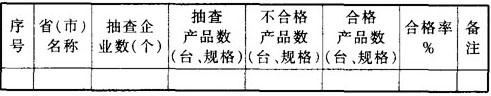 填报单位: 日期: 附表四(样表) 一九九 年机械产品质量统检结果数据汇总表 检测单位名称:(盖章)